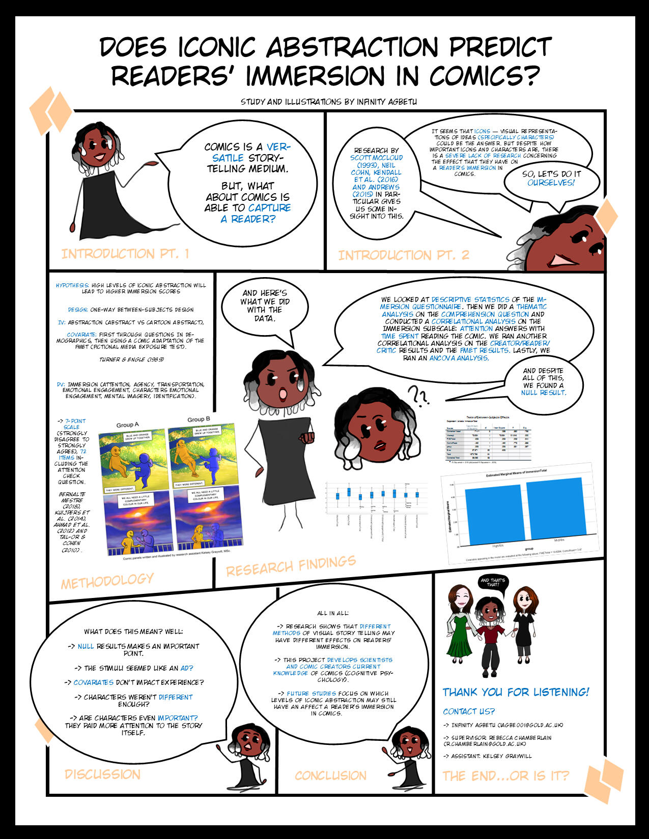 I conducted an experiment on comics and collaborated with an artist my supervisor knew to create the experiment stimuli.